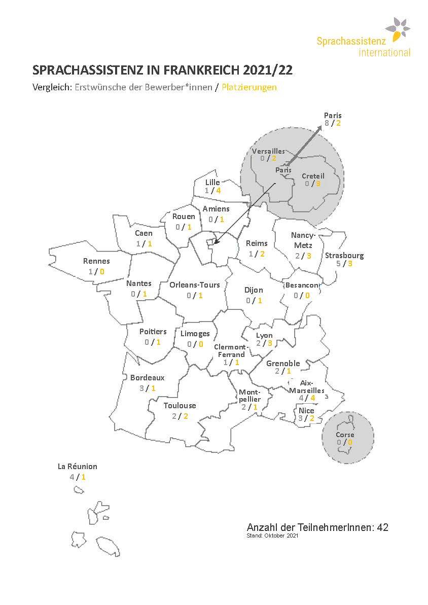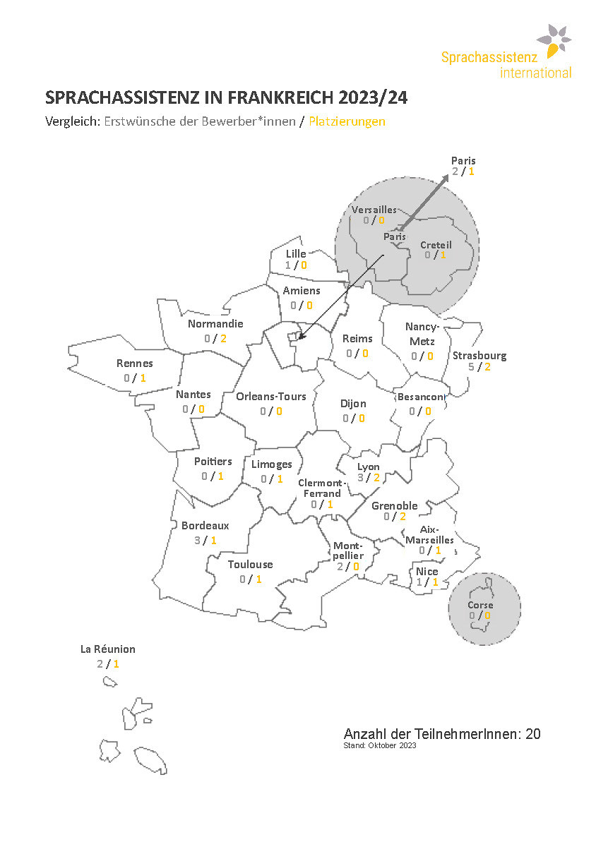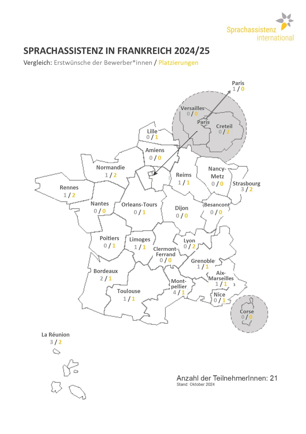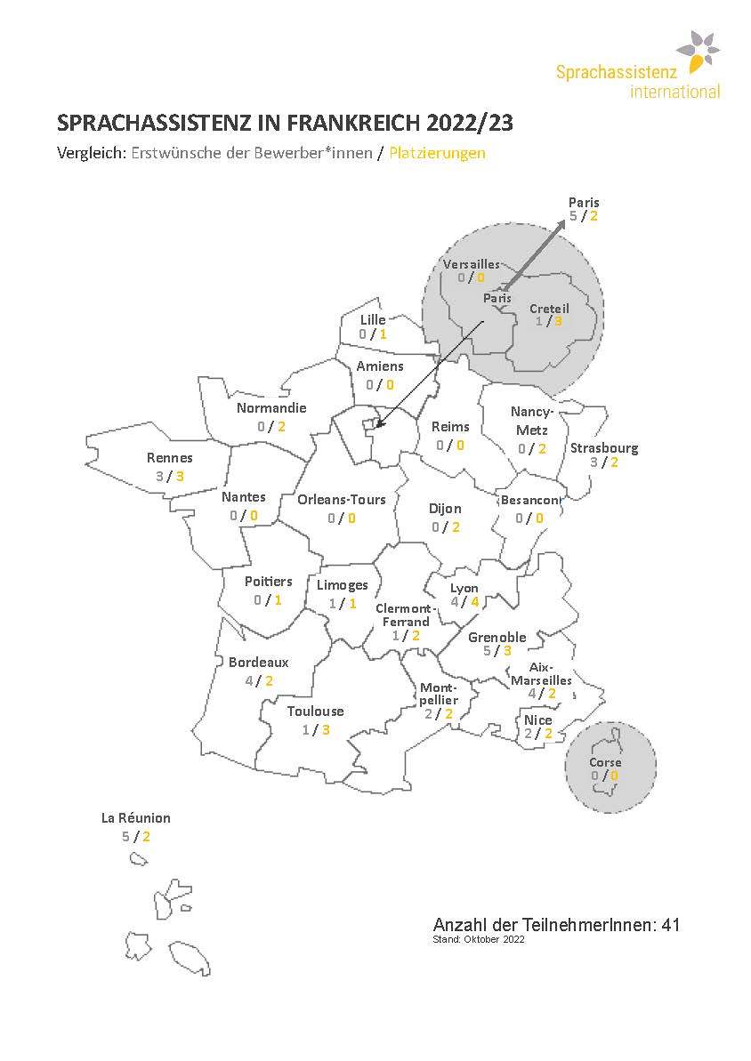 | ca. 30 Stellenanzahl und regionale Verteilung für das kommende Schuljahr werden uns von der französischen Partnerorganisation erst im Mai bekannt gegeben.