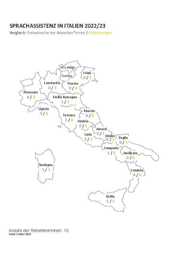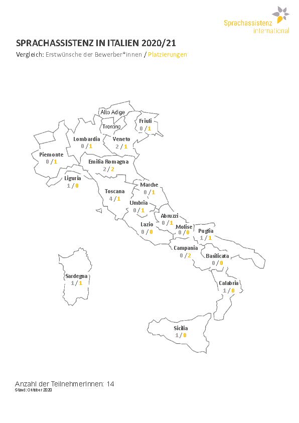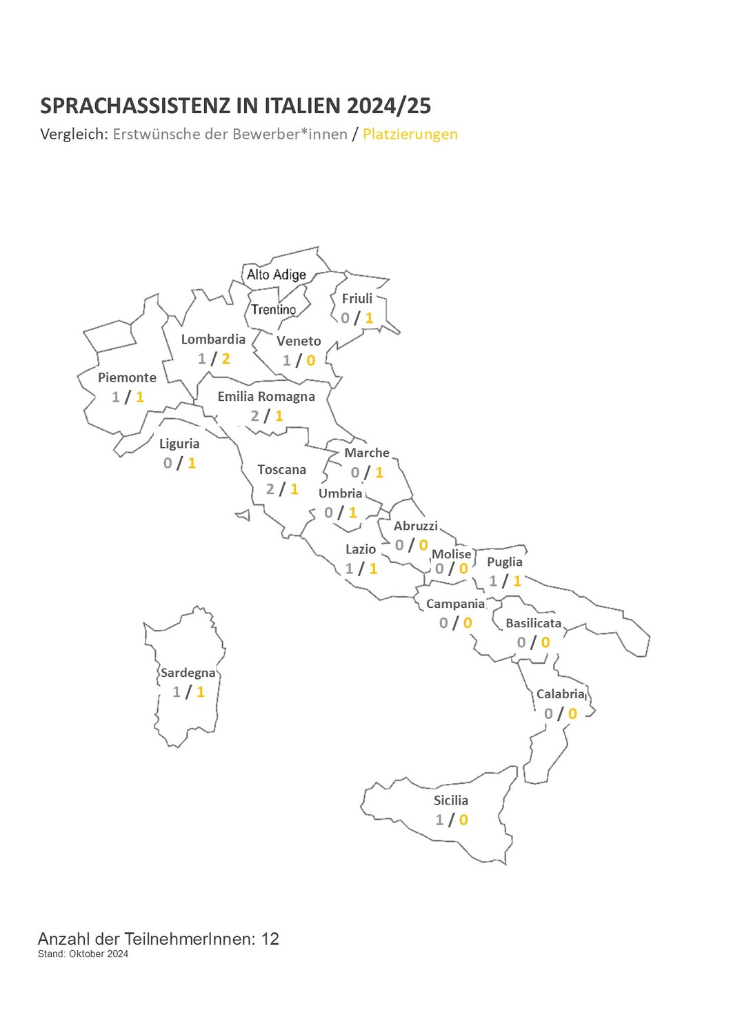 ca. 13 (ab 2025/26) Stellenanzahl und regionale Verteilung für das kommende Schuljahr werden von der italienischen Partnerorganisation festgelegt.