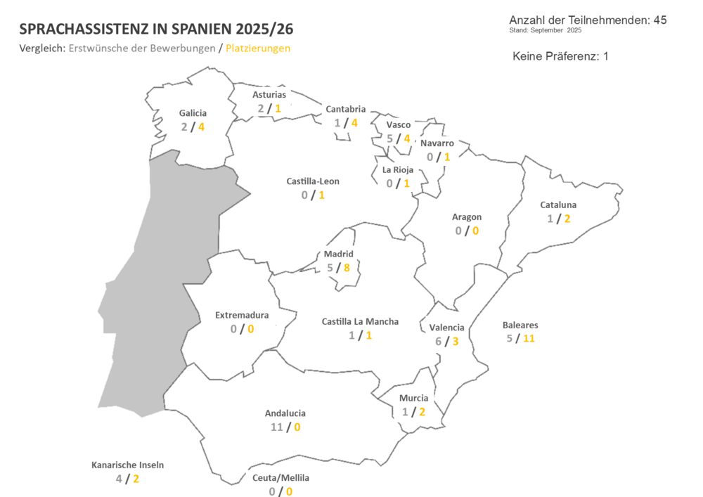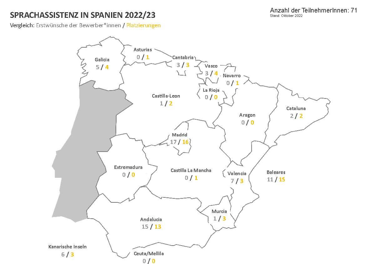 ca. 30-80 Stellenanzahl und regionale Verteilung für das kommende Schuljahr werden von der spanischen Partnerorganisation und den Schulbehörden der einzelnen Regionen (Comunidad) festgelegt.
