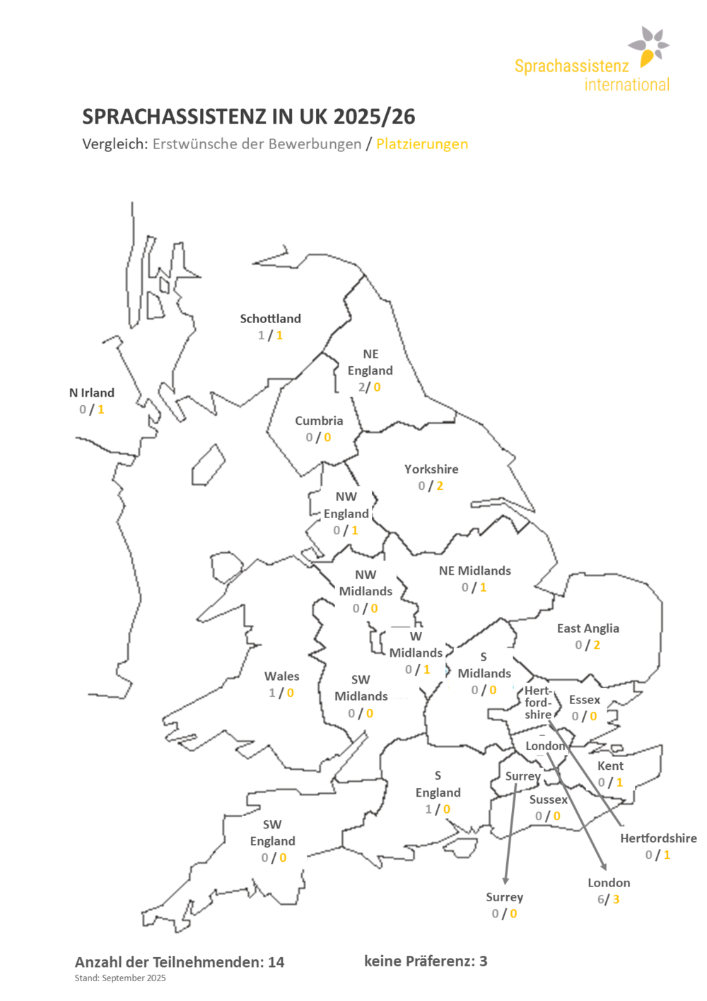 ca. 10-25 Stellenanzahl und regionale Verteilung für das kommende Schuljahr sind abhängig von den Anfragen der britischen Schulen.